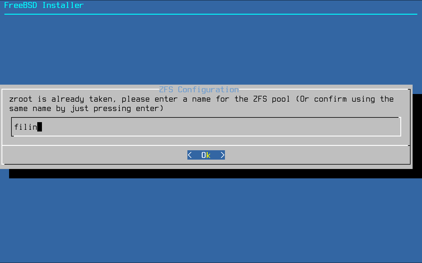 Далее приведён набор скриншотов демонстрирующих установку системы на отдельный SSD-накопитель с файловой системой ZFS